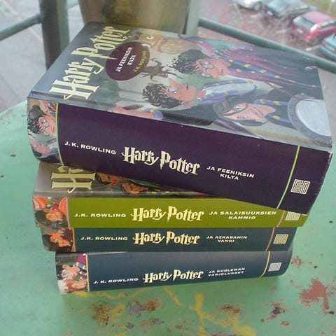 Pehmeäkantinen J.K. Rowlingin Harry Potter -kirjasarjan osat 1-4 englanninkielisenä versiona.