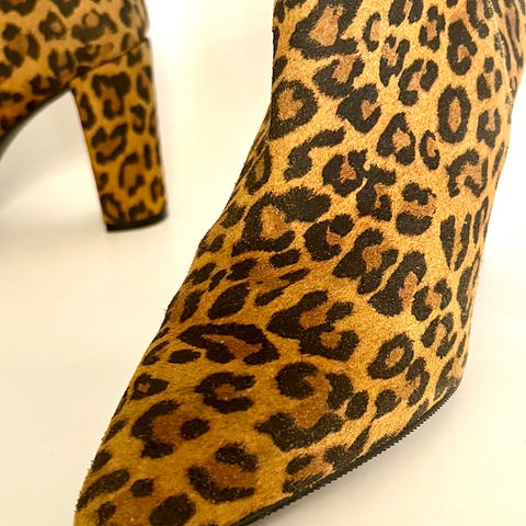Nahkaiset korkeakorkoiset nilkkurit. Varressa mokkanahkainen koristenauha. Korko 10 cm. Erittäin mukavat jalassa!