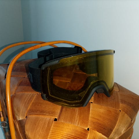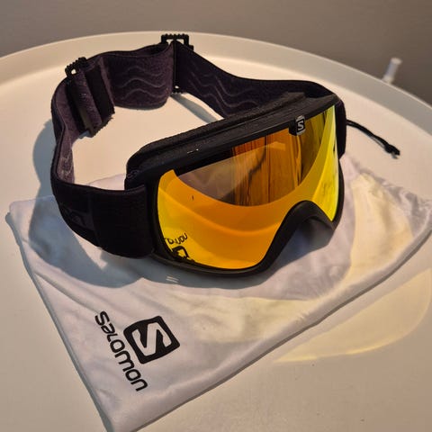 Salomon laskettelulasit, keltainen linssi ja musta kehys. Sopii suojaamaan silmiä lumilautailussa ja laskettelussa.