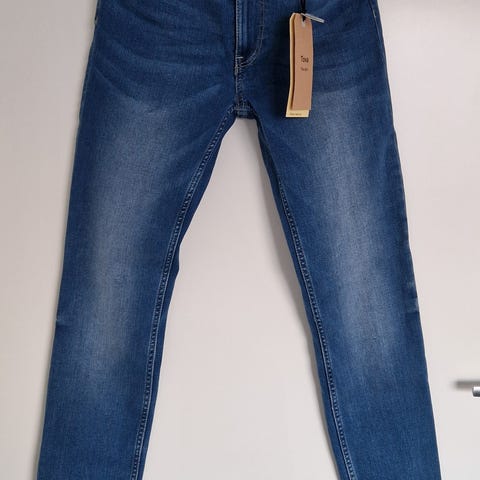 Tova-äitiysfarkut, koko 46. 56 % puuvillaa, 19 % polyesteriä, 14 % lyocelliä, 10 % viskoosia, 1 % elastaania. Lahkeen sisämitta 77 cm. Alaspäin kapenevat lahkeet. Eläintalous.