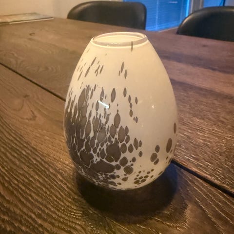 Nuutajärven kaunis maljakko. Korkeus 19 cm, halkaisija 13 cm.