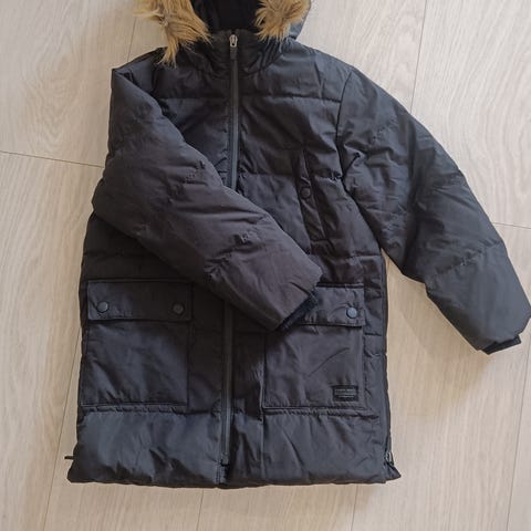 Vähällä käytöllä ollut, uudenveroinen tummansininen toppatakki, koko 122. Lämmin sisävuori.