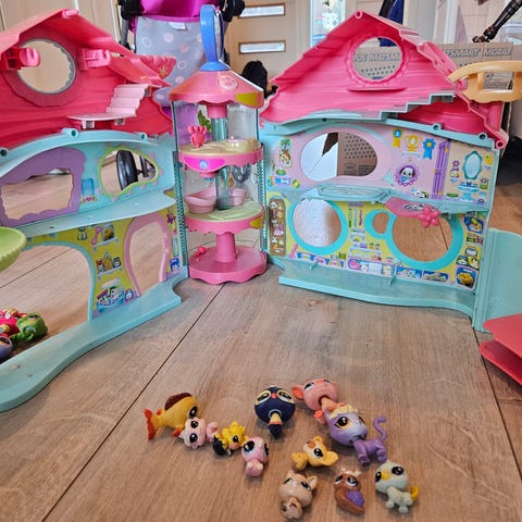 Littlest Pet Shop lelutalo, jossa on monikerroksinen rakenne ja erilaisia yksityiskohtia. Sisältää pienoishahmon.