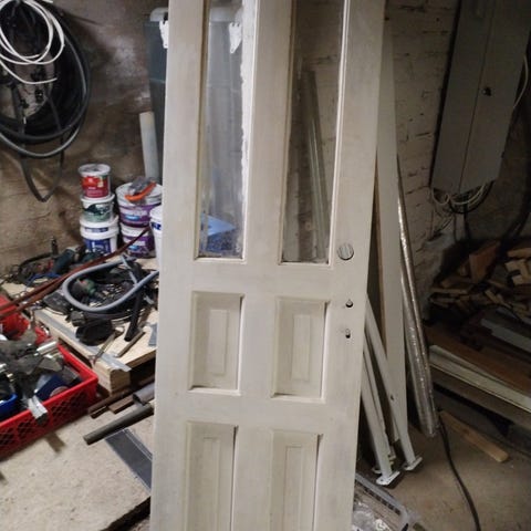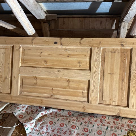 Todella vanha peiliovi, lienee parioven puolikas. Korkeus 181 cm, leveys 60 cm ja paksuus 4,5 cm.