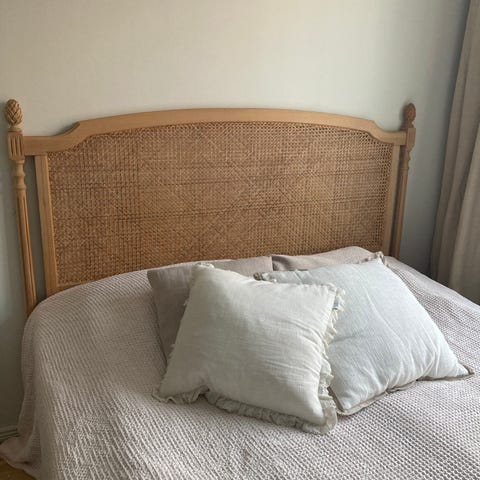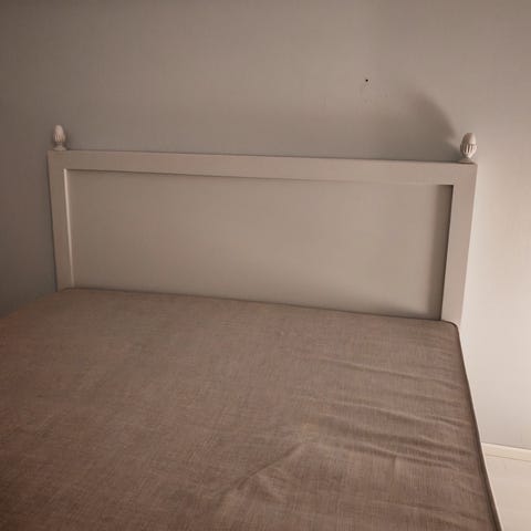 Juvi- tehtaan Kustavilainen täyspuinen sängynpääty. Tätä käytetty 90 cm runkopatjan kanssa lapsella. Pysynyt meillä pystyssä seinän ja sängyn välissä ilman kiinnitystä, joten ei reikiä.Molemmin puolin samanlainen. Muistaakseni vahattu itse valkoiseksi. Tämän voit myös itse käsitellä mieleiseksi.