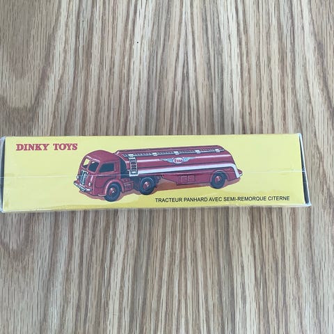 Myydään noin vuosimallin 1952 Panhard K158 veturi ja Citerne Titan 32C tankkeri perävaunu - esittävät ranskalaista 50-luvun säiliörekan pienoismallia / leikkiautoa , molemmat metallia pohjaa myöden. Kokonaispituus noin 18cm. Valmistaja Dinky Toys / Mattel . Auto on tismalleen samanlainen kuin kuvassa, mutta toimitetaan avamaattomassa suojamuoveissaan olevassa paketissaan uudenveroisena. Auton mukana tulee myös suomenkielinen esite autosta. pienoismalli auto toys leikkiauto autoja leikkiautoja pikkuautoja pienoismalleja leluauto leikkiautoja pikkuauto leluauto keräilyauto pienois malli vintage retro metalliauto pikku punainen rekka-auto säiliörekka kuorma-auto traileri peltiauto tankkeri tankkerirekka kuorma-auto perävaunu bensa