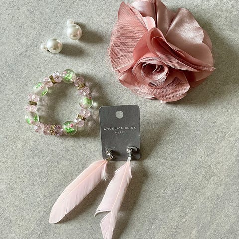 Korusetti mm. H&M, Glitter ja pikkurihkamajuttuja. Lapsille kiva paketti. Muffinssista puuttuu muutama strassikivi ja jäätelötuutin päällä hieman jotain likaa (voinee yrittää paremmin osaava puhdistaa).