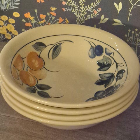 Kolme kuppia ja kolme aluslautasta. Yhdessä kupissa pientä hiusmurtumaa, muut ehjiä ja siistejä. Pullalautaset eri ilmoituksessa..