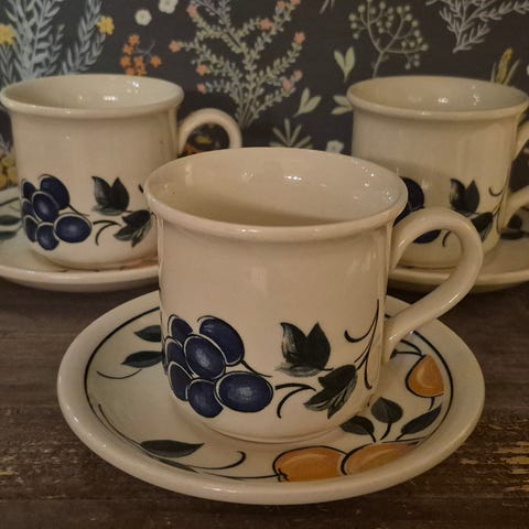 Neljä ehjää ja siistiä lautasta. Kupit/tassit eri ilmoituksessa..