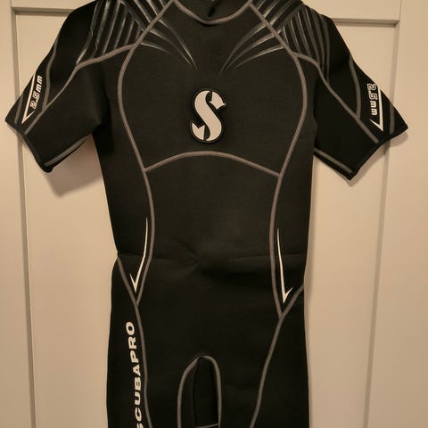 Lyhytlahkeinen lasten märkäpuku. Koko XS, 116cm, n. 5 vuotiaan koko.