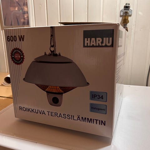 Harju 2024/PHP-2000DI terassilämmitin, teho 2000W, jännite 220-240V, 50/60Hz. Väri musta. Suunniteltu ulkokäyttöön IP34-suojauksella. Malli sopii terassien ja ulkotilojen lämmitykseen.