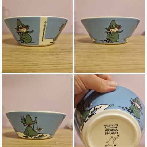 Tarralliset ja käyttämättömät muumikulhot Nuuskamuikkunen vihreä.