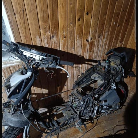 Siitäpä tommonen kilvetön skootteri rojekti tai vaikka varaosiksi merkistä ei tietoa mukaan laatikoissa näkyvät osat