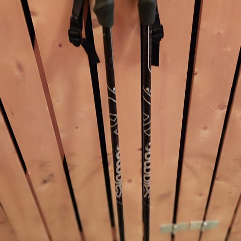 Gipron merkkiset laskettelusauvat, pituus 95cm. Vähän vääntyneet mutta silti toimivat.