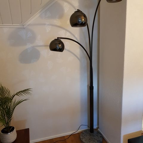 Kolmiosainen valkoinen lattiavalaisin, Habicon Tampereella valmistama, jossa kolme kaarevaa varjostinta. Valaisin on valmistettu pääosin metallista ja marmorista Sopii olohuoneen tai makuuhuoneen valaistukseen. Väri valkoinen.