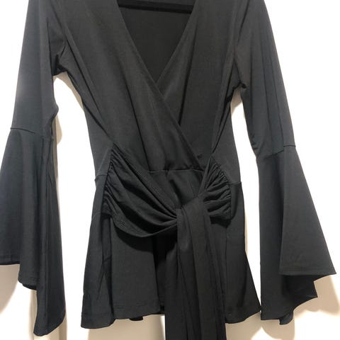 Myydään musta Bubbleroom Mejra pusero. Koko 38, kainalomitta 41 cm (etuosa joustavaa kangasta). Materiaali polyesteriä.