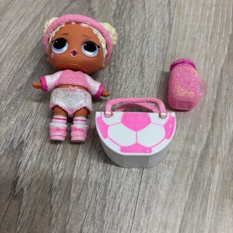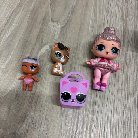 Mukaan laukku, kruunu, kampa, juomapullo ja vaihtovaate