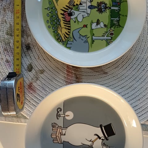 Tarralliset ja käyttämättömät muumilautaset Seikkailu muutto.