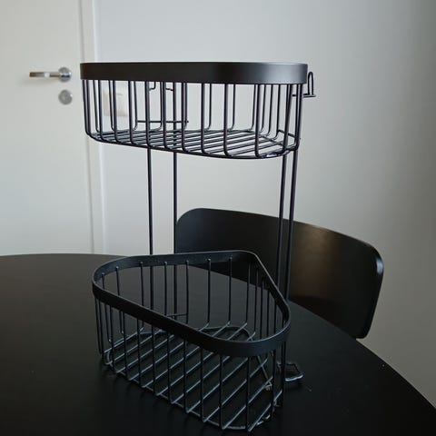 Kuvan siisti ja ehjä hylly kylpyhuoneeseen/suihkutilaan. Mitat: korien leveys n.33cm, hyllyn korkeus n.29 cm.
