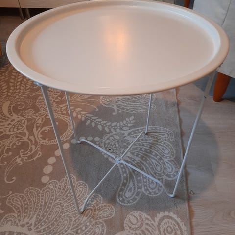 Metallinen iso tarjotin 86cm halkaisija. Jalat kuuluvat mukaan, korkeus 48cm.