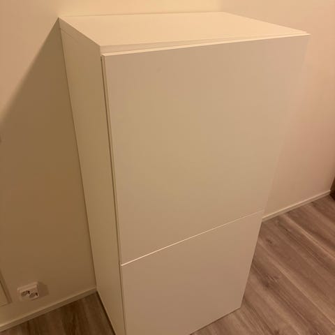 Kaksi hyväkuntoista Ikean bestå hyllyä, molemmissa neljä jalkaa. Koko 38×60×22. Jalat 10cm. Muuten hyvässä kunnossa, mutta toisessa hyllyssä yläkulmassa hieman kulumaa. Osat oven avaukseen mukaan halutessa (eli ovi avautuu painamalla).