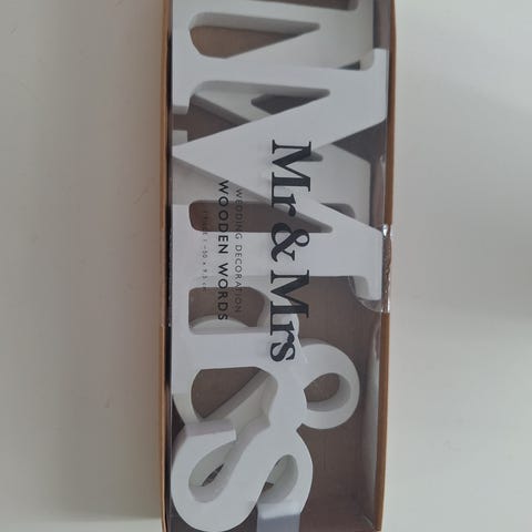 Valkoinen Mr & Mrs puukoriste