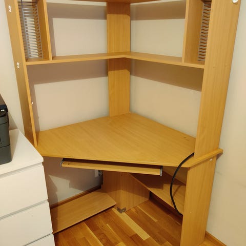 Työ/tietokonepöytä. Näppäimistön vetohylly puuttuu muuten ehjä.