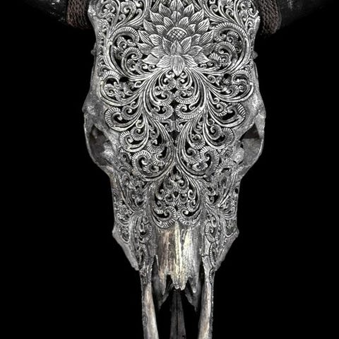 Ei varaushintaa - Suuri harmaa käsin veistetty härän pääkallo - Iso