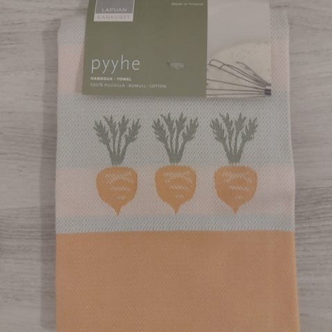 Myydään uudet (laput paikoillaan) Lapuan kankureiden laadukkaat, pellavaiset iso laudeliina 46×150cm ja saunatyyny 20×46cm.
