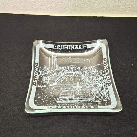 1952 Olympialaisiin Riihimäen Lasin valmistama tuhkakuppi/matkamuisto Lahden Asema Suomi