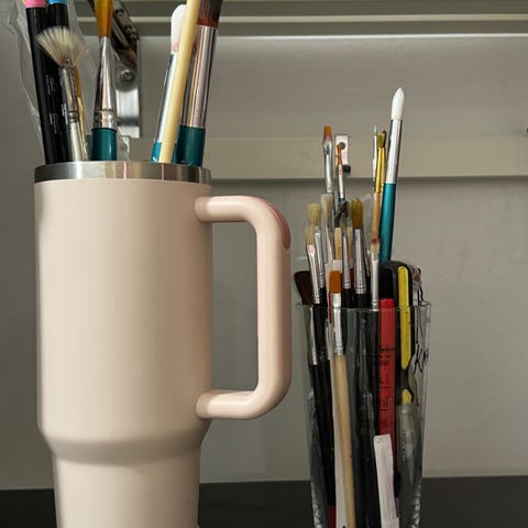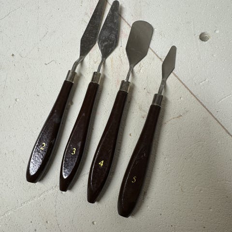 - Myös siveltimiä on käytetty, mutta ne on pesty huolellisesti: pyöreä 1, pyöreä 5 ja 1/4-kulmainen varjostin