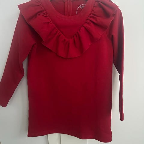 Metsola Lasten mekko, koko 110/116 cm, tytöille. Pitkähihainen malli, valmistettu pehmeästä materiaalista, sopii arkeen ja juhlaan. Käytetty vain pari kertaa.