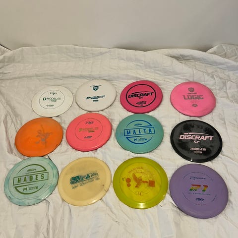 Iso setti hyviä käyttökiekkoja hyvässä kunnossa. Yksittäisiä kiekkoja en ala postittamaan, mutta isomman setin postitus onnistuu.