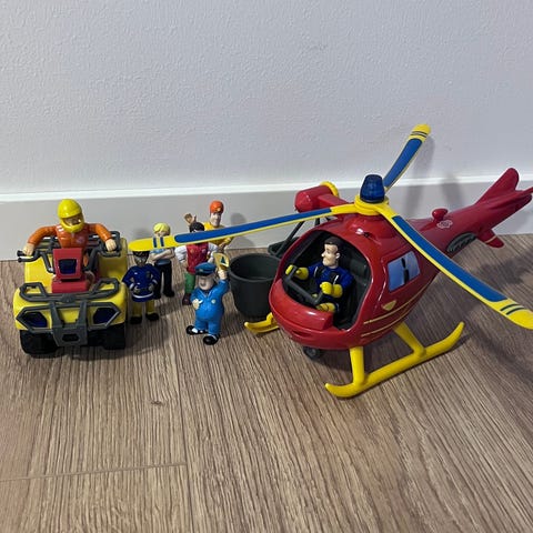 Helikopteri, paloauto, mönkijä, kymmenem figuuria, kuusi palosammutinta, kaksi taskulamppua, ensiapupakkaus, radiopuhelin, neljä liikennekartiota, kaksi palosalkkua, paarit. Irto-osina kaksi ovea paloautosta, vesitykki ja komentopöytä paloasemasta.
