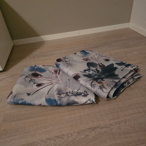 Kauniisti laskeutuvat sivuverhot 2kpl, väri ei noin kirkas enemmän vanhaan roosaan väri.