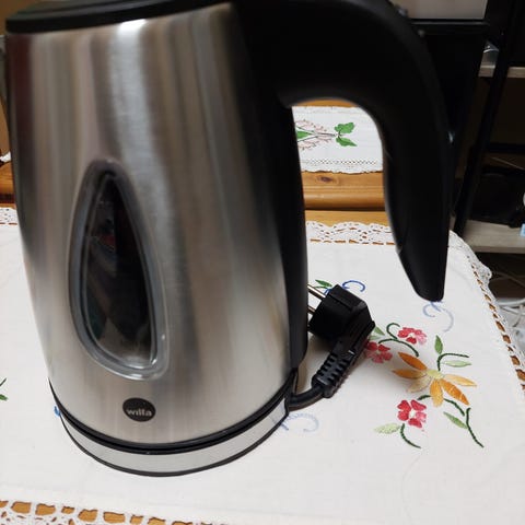 Tarpeeton uusi vedenkeitin alkuperäisessä pakkauksessa uuteen kotiin.