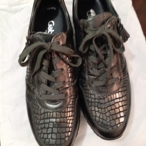 Uudet Gabor -merkkiset tennarit välikauteen, väri nahanruskea. Kevyt tekstiilivuori, päällinen pehmeä mokkanahka. Irroitettava pohjallinen. Koko UK9, vastaa suurin piirtein kokoa 43. Pohjallisen pituus 28.4 cm.