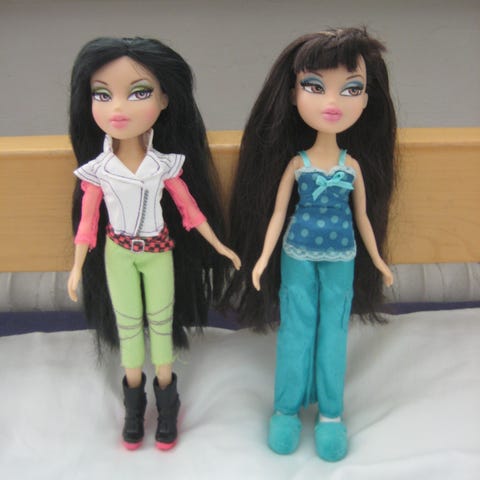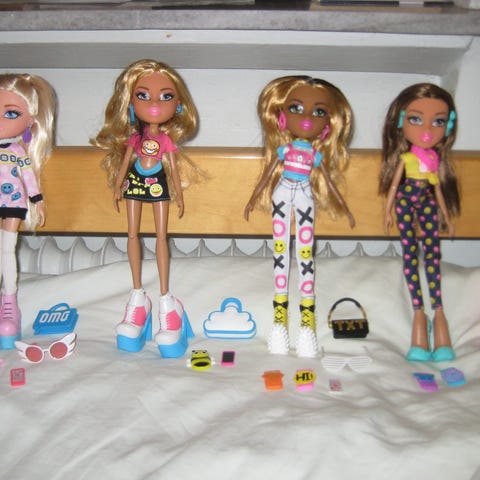 Bratz sleepover party nuket Cloe, Sasha ja Yasmin omissa vaatteissaan, hyvässä kunnossa, taloudessa kissoja.