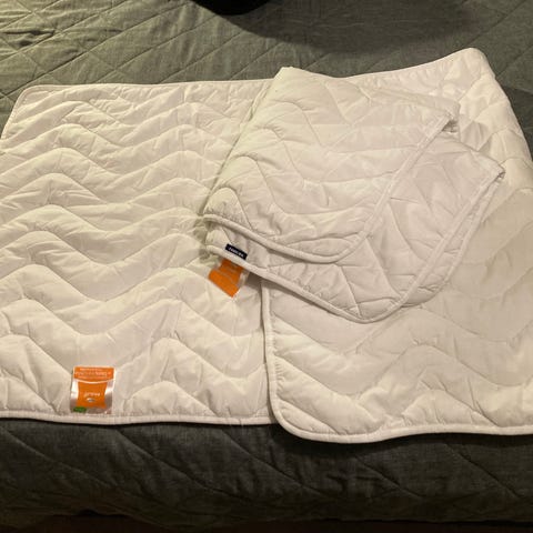 Familon patjansuoja, sopii lastenpatjaan, pituus suojalle n 132 cm, suojan päässä huppu joka pitää sen paikallaan paremmin patjassa. Pehmeä ja hengittävä suoja, pesty puhtaaksi. Ehjä. Ei ole kotieläimiä, ei tupakointia, voin postittaa.