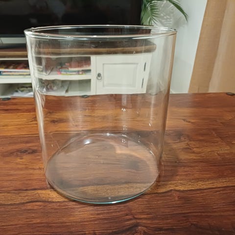 Iso hopeakuvioitu kynttilälyhty/maljakko. Kork. 30cm, halk. 18cm. Ehjä eikä kulumia.