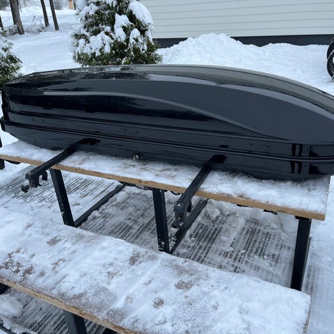 Tästä siisti ja iso boxi 900*2300 kantavuus 75 kg. Todella tilava itsellä ollut myös kesä aikaan lomareissuilla katolla. Boxi on lukittava ja avattavissa molemmilta puolilta (1 avain). Nouto Haapajärveltä.