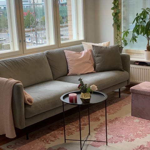 Myyntiin käytössä ollut 3-istuttava sohva. Istuimet ja selkänojat ovat irrotettavia, sekä päällyskankaat pestäviä. Kunto hyvä.