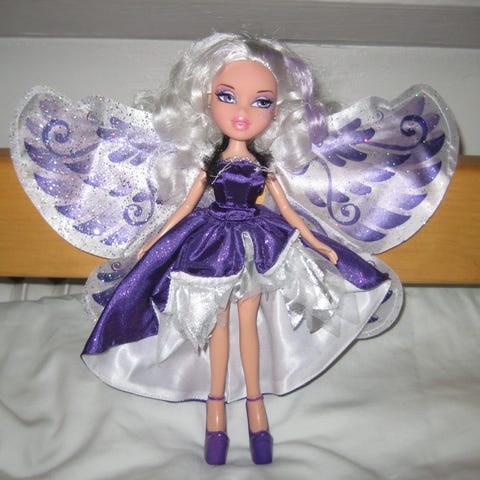 Bratz girls nite out Dana omissa vaatteissaan, vuoden 2004 malli, alkuperäinen kampaus tallella, taloudessa kissoja.