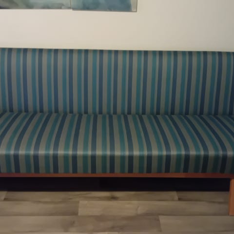 Sohva osio jo kulunut, puut tuntuu vähän läpi, mutta sopii tilapäiseenkäyttöön.