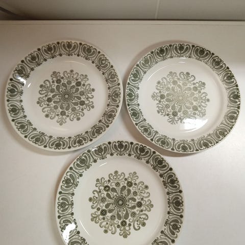 Raija Uosikkinen 1963-71 Sampo sarjaa syvät lautaset 8 kpl. Halkaisija 23cm,korkeus 4 cm. Ei käytön jälkia. 10e/yksi,70e kaikki kahdeksan.