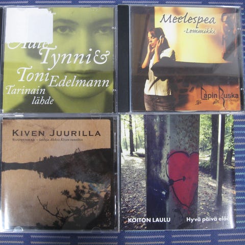 Myydään cd-levyjä 5,00 euroa kappale. Kaikki cd:t kuunneltu ja todettu toimiviksi. Cd:ssä voi olla naarmuja & kansipapereissa jälkiä/omistuskirjoituksia, mutta cd-kotelot ovat ehjät. Postituskulut ostajalle ja noutokin sovittavissa.