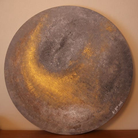 Myydään uusi akryylimaalaus. Maalattu mdf-pohjalle. Halkaisija 60 cm.