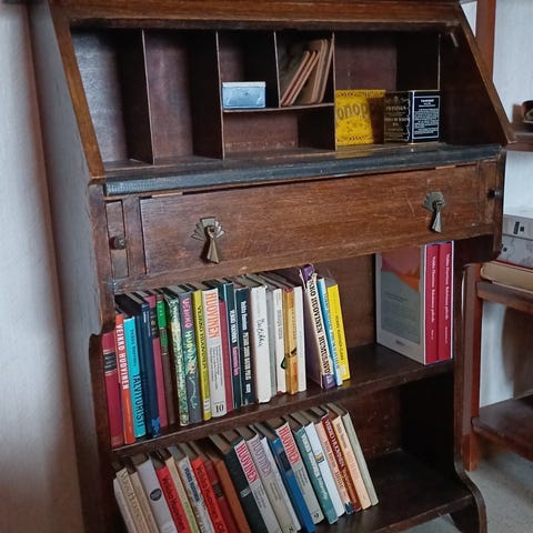Nyt on tarjolla ihan pro-kampe! Järeä kirjakärry. Kaksipuolinen tukeva juttu sinulle, jolle kirjat tai vastaavat jutut ovat erottamaton osa elämää. Tietenkin jos esittelet ja myyt juttuja, tämä voisi olla juuri sinulle ihan Best!Reilun metrin korkea, noin 90 leveä ja vajaa 50 syvä. Pätevä juttu ja hyvät, keveästi rullaavat pyörät. Tämä on ollut ammattikäytössä ja se näkyy toki käytön jälkinä mutta myös esineen laadussa. Ei ole rimpula eikä heppoinen. Heavy duty, sanoisi Markku, teknikko. hylly kärry kirjahylly kirjakaappi kirjakärry bookcase rolling library kirjastokärry levyhylly kotikirjasto retro pro ammattilais stand esittelyhylly myyntihylly esittelykärry messukärry kirjakauppa levykauppa kirjamessut levymessut keräily