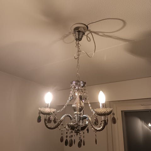 Myydään kattovalaisin ”timantti” riippukoristeilla. Ehjä ja siisti. Yksi roikkuva puuttuu mutta ei vaikuta ulkonäköön milläänlailla. Hp. 50e/tarjousVastaava uutena 159e .Nouto Lahdesta, Pyhättömänmäeltä.
