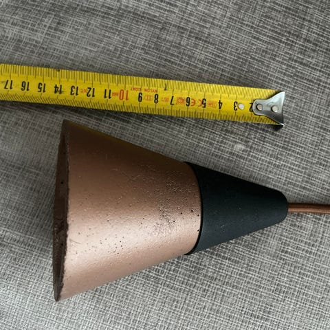Myydään betoninen kattovalaisin kuparinvärisellä alaosalla. Käsityötä. Valaisin on tyylikäs ja ainutlaatuinen, sopii moderniin sisustukseen.